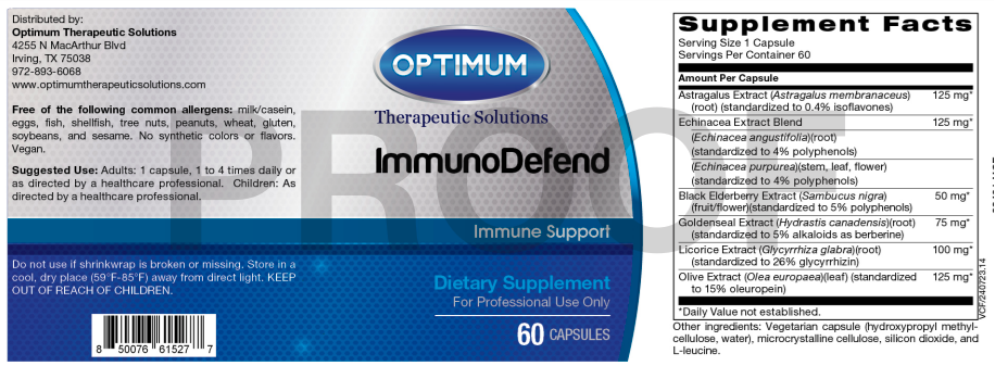 OTSÍs Immunodefend contains Echinacea and Andrographis. These are herbs that promote a healthy inflammatory response to help support normal immune function. Also included are Astragalus, green tea extract, medicinal mushrooms, and beta?glucans to aid and help support the immune system to respond normally. ImmunodefendÍs unique formula also adds Elderberry to help support antioxidant status in the body, which also aids the immune system to function as expected. Finally,  Arabinogalactan helps to promote normal microbial diversity in the gut, which also supports immune health.